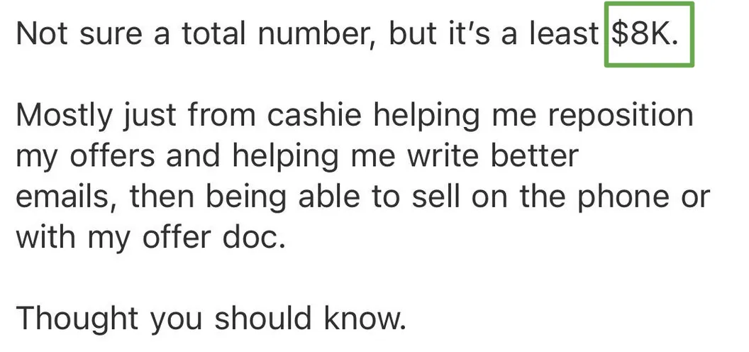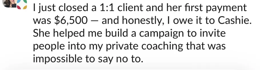 Chat Course shows you how to turn the offers Cashie gives you into paying clients in weeks, not months.