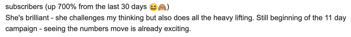Hunter, 400k followers and 100 new users in her app.